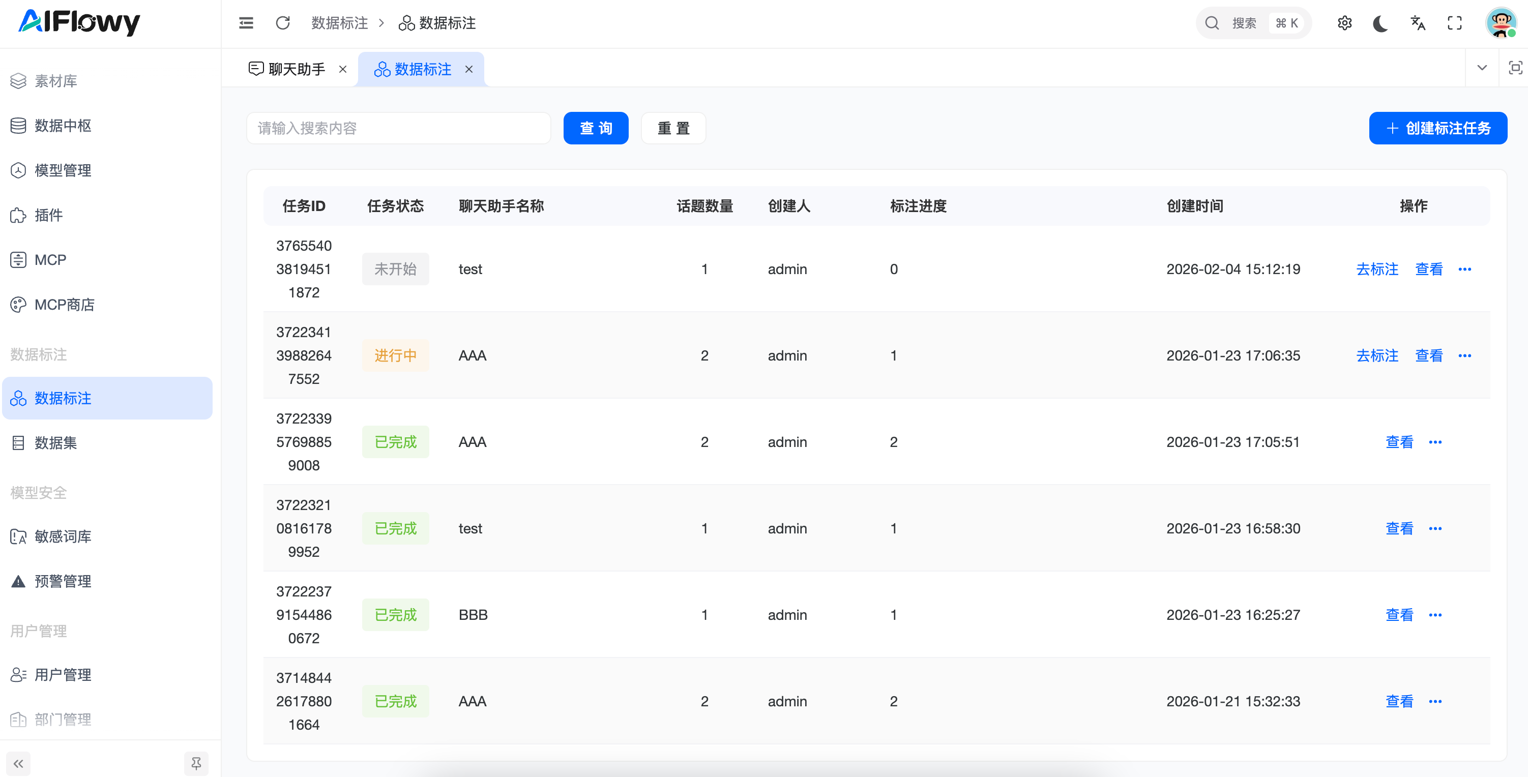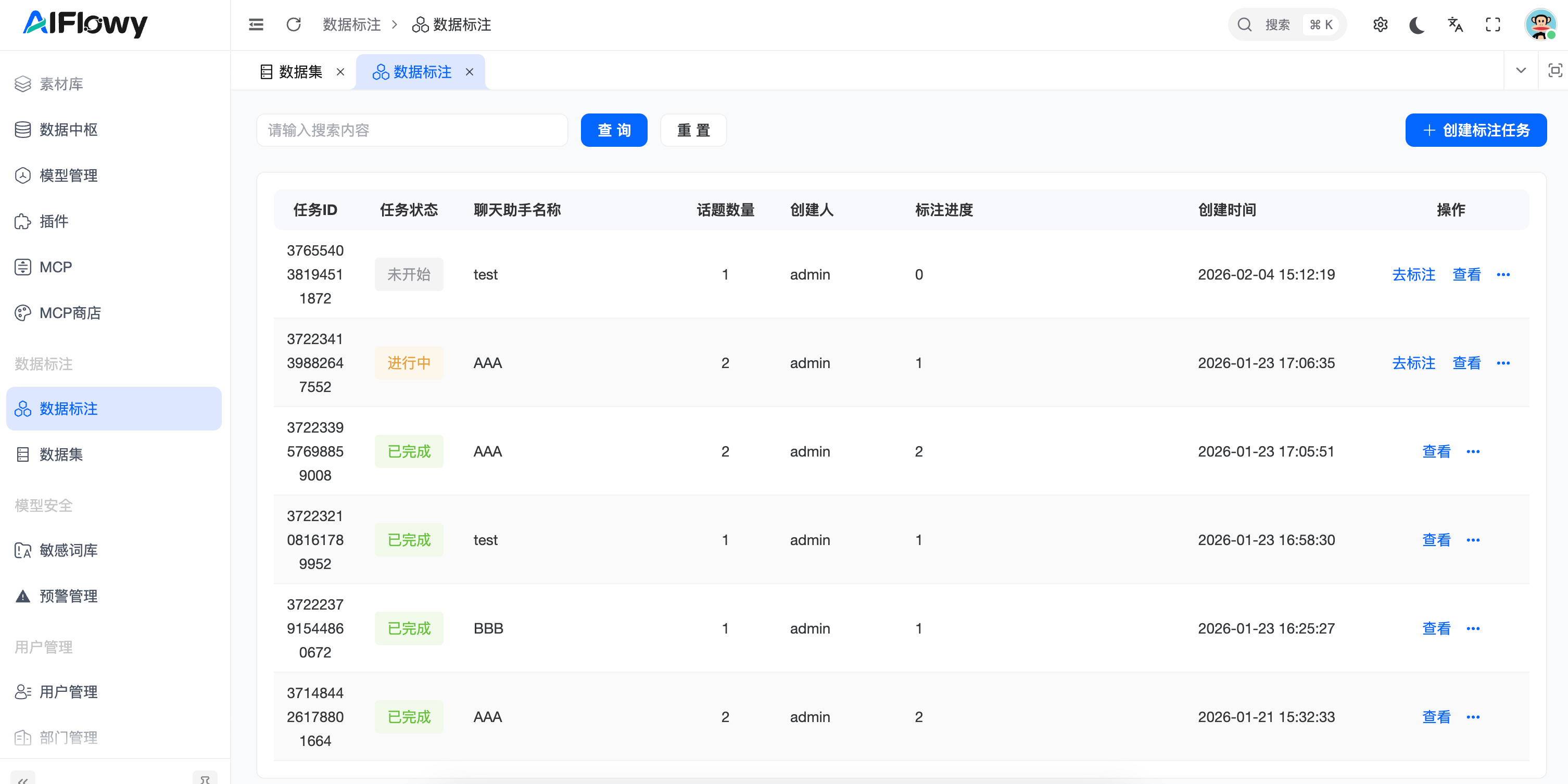 任务列表详情:点击查看进入列表页查看标注信息,可以查看标注的进度以及对话消息