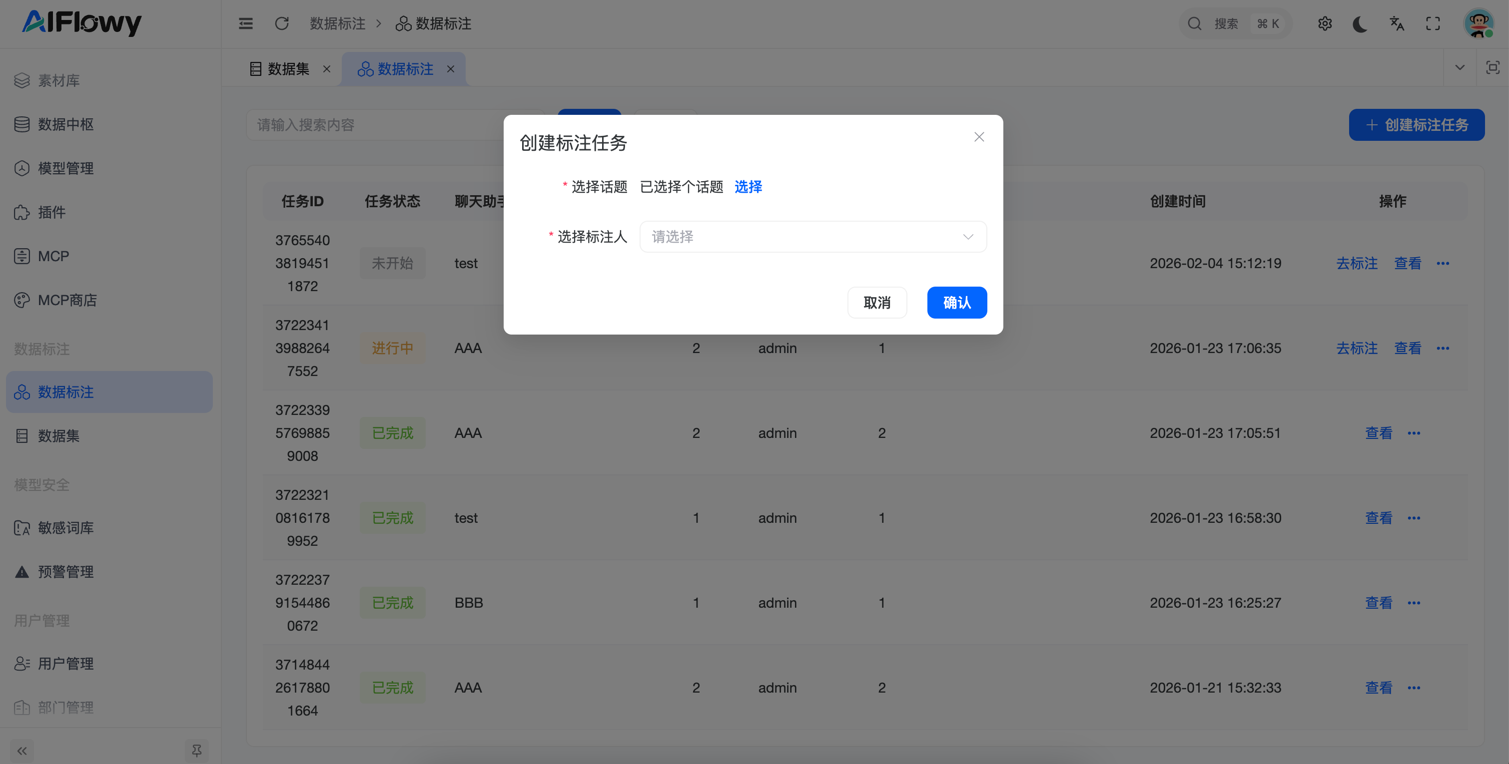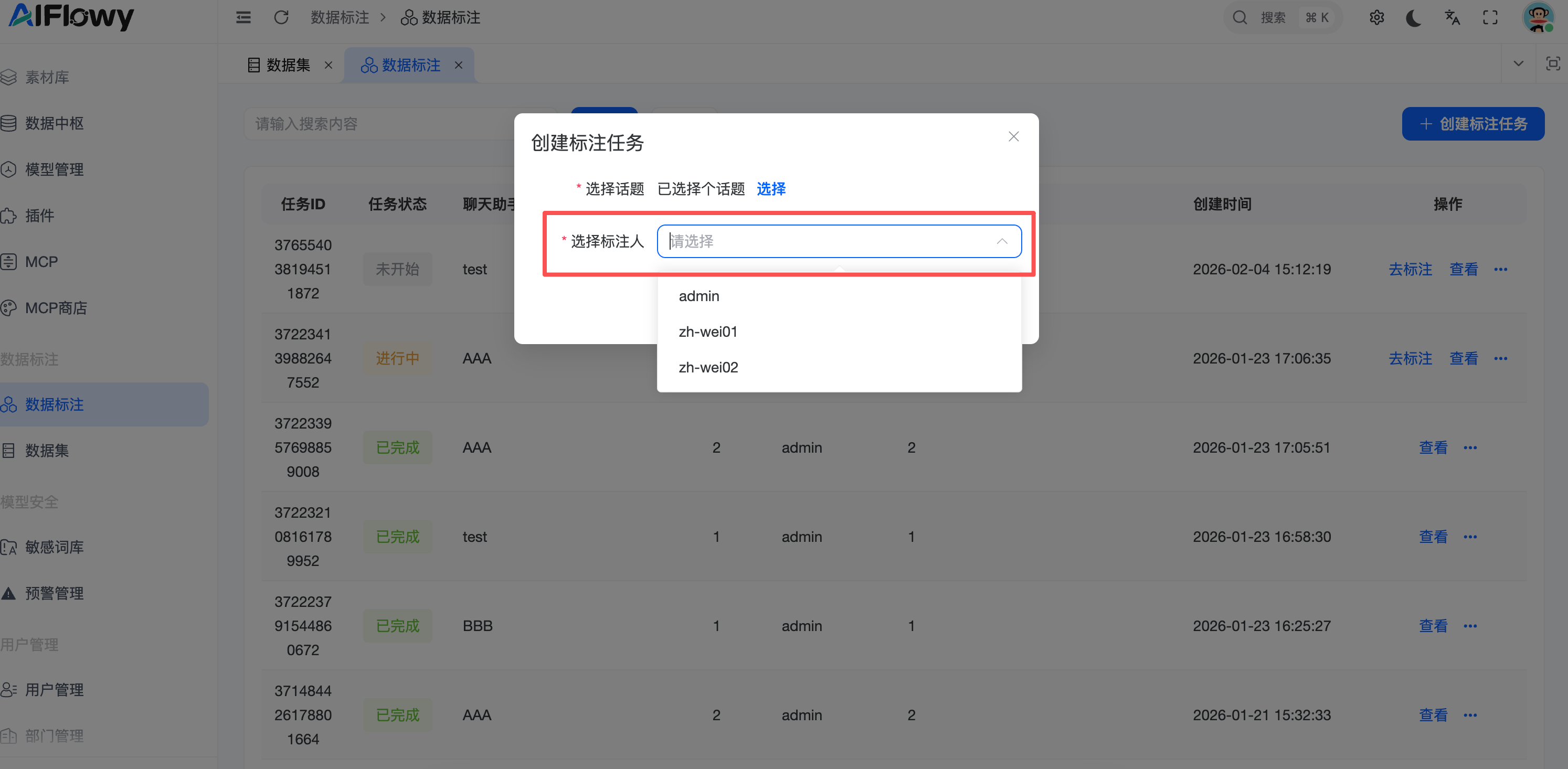 人员指派:支持指派特定的标注人(如:张三、小红)负责该任务。
